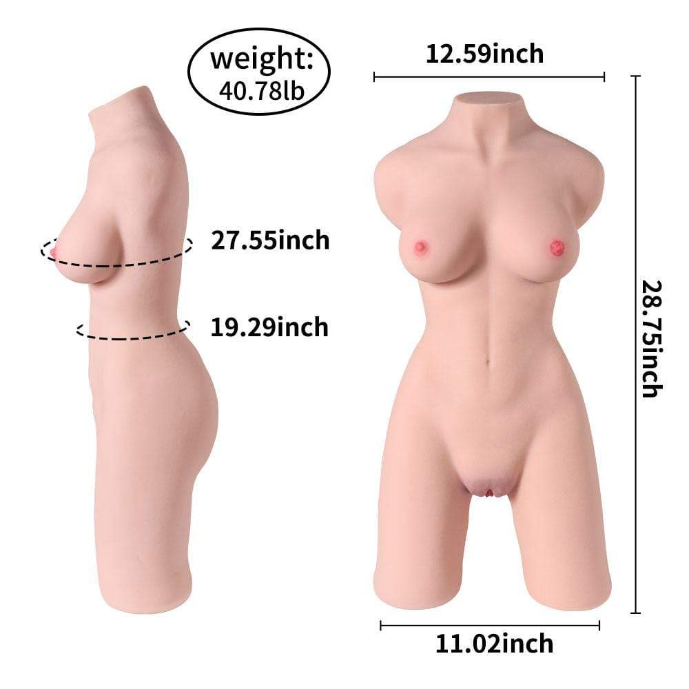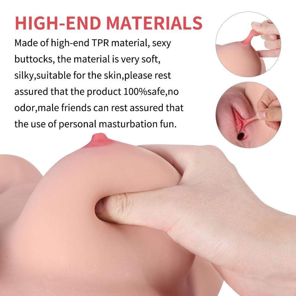 As you can see intuitively, the alluring tits, slim waist, spank-able butts, and of course double channels of bumpy inner designs......You'll be happy to spend every day and night with her! Up top, you are given the chance to prop your hands on the pair of meaty breasts, licking and biting those pink nipples, or getting your desirous dick pinched between the pretty cleavage. And below, both the luscious pussy and tight ass feature tons of rich nodes, ribs, and threads. With a lot of lubricant, the smooth slide will help you feel the wonderful stimulation inside as you thrust. You can also choose to enjoy by her legs for fresh fun. Go ahead and get all your girl plans realized!