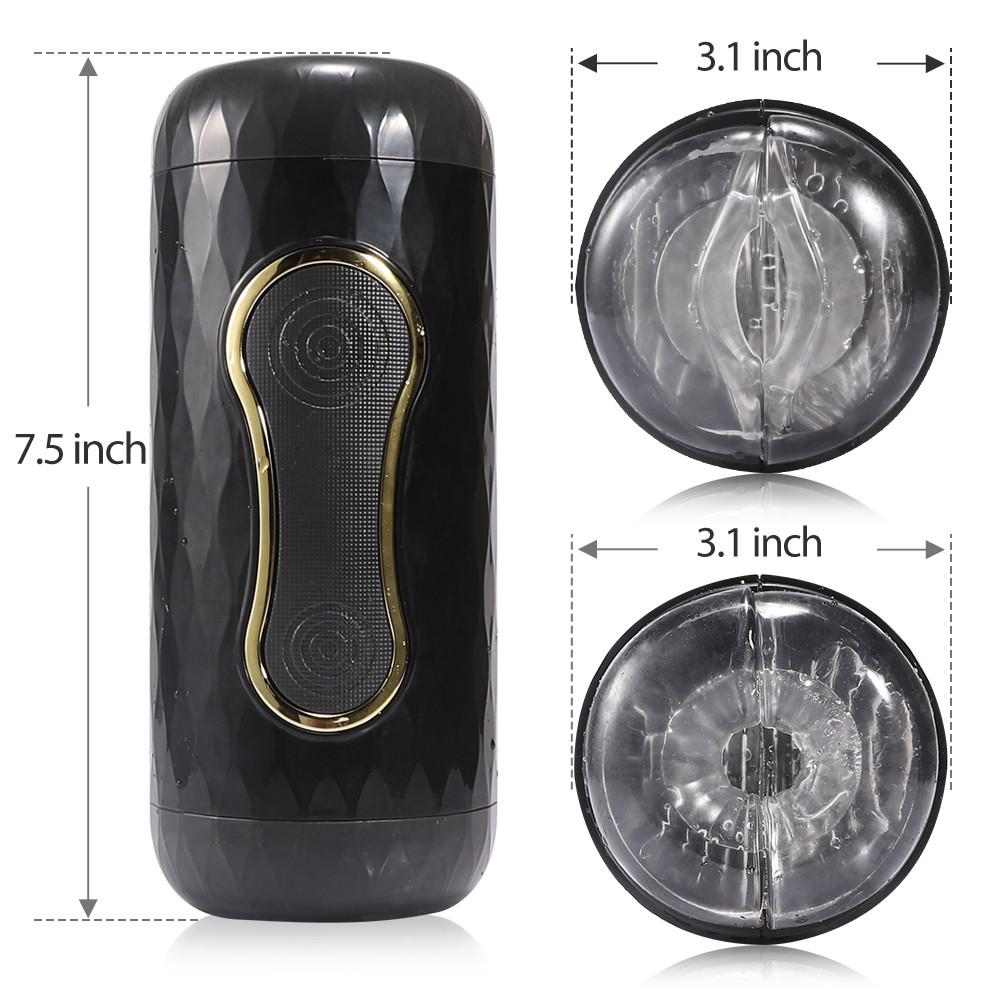 Male masturbator cups get pleasure through internal squeezing. There are two push switches on the shell, you can stuff your dick in, and then manually squeeze it to help stimulate your penis and glans, so as to get a sense of happiness. With two holes, anus and vagina, you can experience double pleasure. The interior has transparent artificial particles and textures, which constantly tease your dick, bringing the ultimate sense of wrapping to men. The shell has a wavy texture, which is easy to hold and prevents it from falling during operation. Two dust-proof shells can be kept clean when not in use, which is convenient for next use.